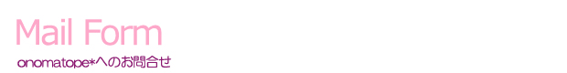| 「onomatope*」へのお問い合わせは下記フォームよりお送りください。 フォームが使用できない場合は「 メールアドレスまで、直接メールをお送り下さい。 携帯メールでお問い合わせをされる場合は、 「onomatope.site」のドメインメールを受け取る設定にしてください。 |